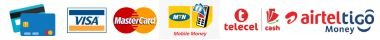 We accept Visa, Mastercard, MTN Momo, Telecel Cash & AirtelTigo Cash